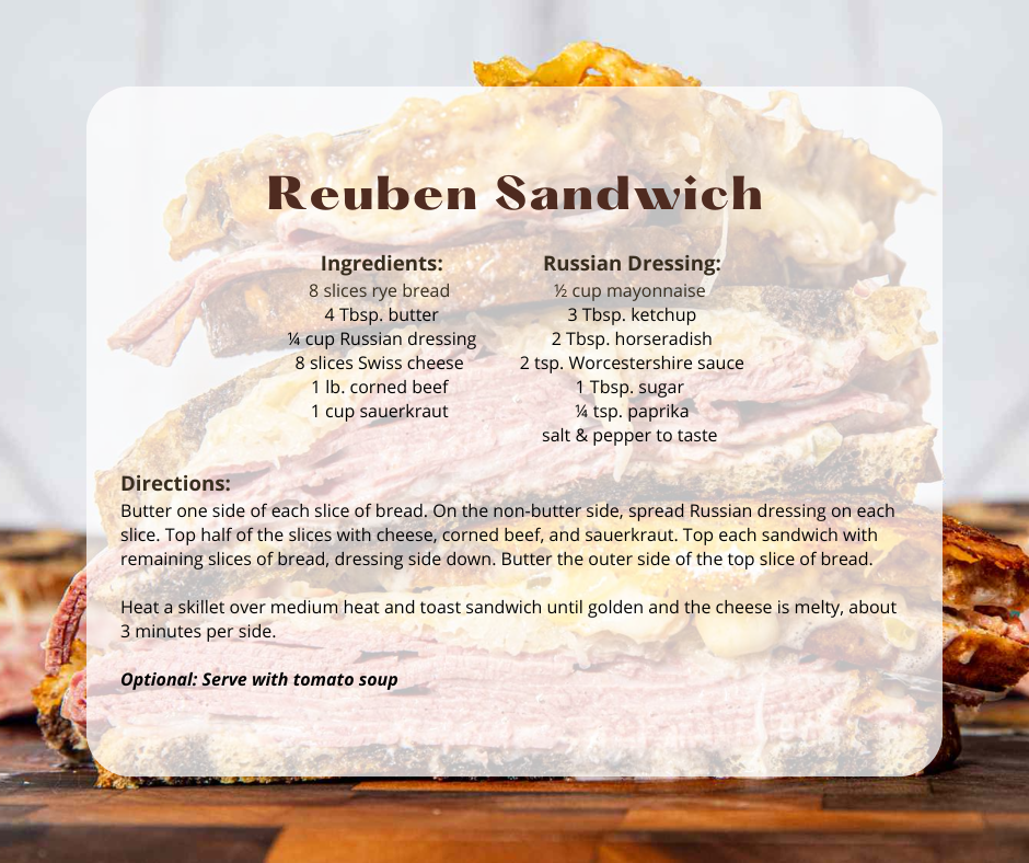 A Reuben sandwich is a mmmm-mmm, good way to weekend! Serve it up with a side of tomato soup and college football, and you are set!